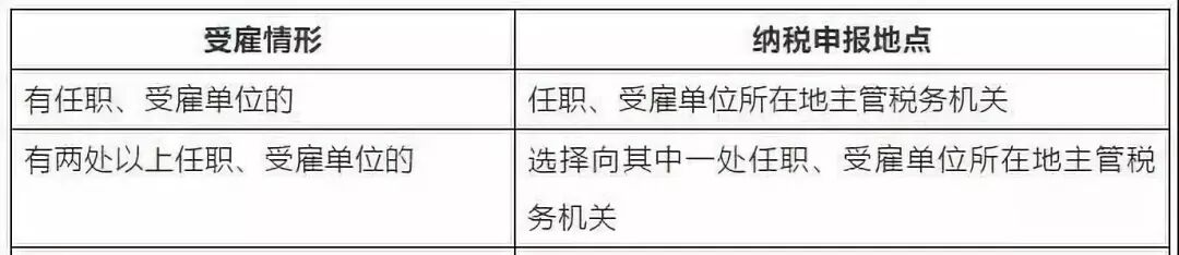 需要注意的是:需要办理汇算清缴的纳税人,应当在取得所得的次年3月1日至6月30日内,向任职、受雇单位所在地主管税务机关办理纳税申报,并报送《个人所得税年度自行纳税申报表》。纳税人有两处以上任职、受雇单位的,选择向其中一处任职、受雇单位所在地主管税务机关办理纳税申报;纳税人没有任职、受雇单位的,向户籍所在地或经常居住地主管税务机关办理纳税申报。